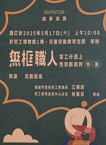 高雄市政府勞工局舉辦「無框職人「當工仔遇上性別新視界」特展,邀請社會各界共襄盛舉